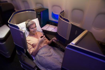 Höchster Komfort und größtmögliche Privatsphäre an Bord prägt die United Polaris Business Class. Jeder Sitz, der zu einem 180 Grad flachen, zwei Meter langen Bett umgewandelt werden kann, ist ein Gangplatz. Die beiden Plätze in der Kabinenmitte sind durch eine elektronisch verstellbare Trennwand zu separieren. Mit Saks Fifth Avenue fand United einen Partner, der speziell für Polaris neue Bettwäsche entwickelt hat: Daunendecken, bequeme Sitzauflagen für die Nachtruhe, durch Gel gekühlte Kopfkissen und Amenity Kits mit Produkten von Sunday Riley sorgen für einen entspannten Langstreckenflug. Und wer nicht gestört werden möchte, schaltet das „Do not Disturb“-Zeichen ein.
