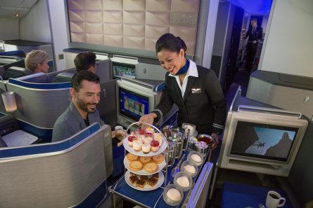 Der kulinarische Service basiert auf dem „The Trotter Project“, einer Vereinigung von Spitzenköchen, die saisonale und regional ausgerichtete Menüs für United entwickeln. Zu den Mahlzeiten serviert United ausgewählte Premiumgetränke aus aller Welt. Der Gast kann entscheiden, ob er den vollen Service mit Vor- und Nachspeisen genießen oder lieber ein verkürztes Essen haben möchte, wenn er mehr Zeit zum Schlafen wünscht.
